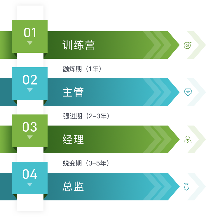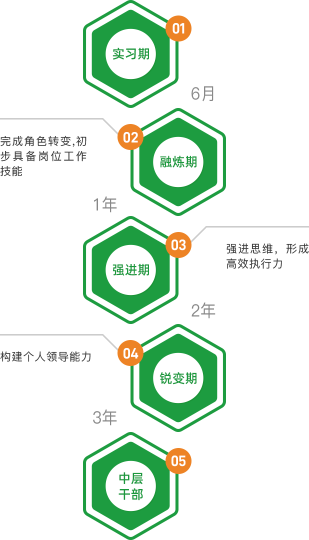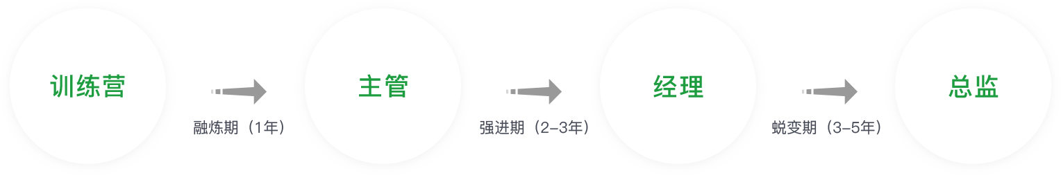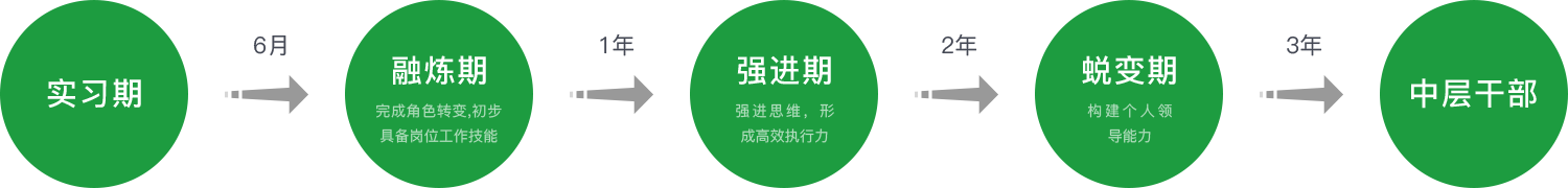 和聚力培養(yǎng)周期為三年,不同階段輔以不同培養(yǎng)項(xiàng)目,職位目標(biāo)為晉升至中層。6次評估、4次晉升、15場集中培訓(xùn)、3次拓展活動、9次座談會/案例分享